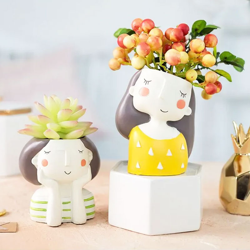 Thiết kế: Chậu được thiết kế độc đáo với hình ảnh cô gái, mang đến sự mềm mại và tinh tế cho không gian.